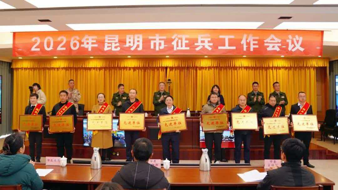 2026年1月15日,2026年昆明市征兵工作会议顺利召开,会议通报表扬2025年在征兵工作中表现突出的单位和个人,总结2025年征兵工作并部署2026年征兵任务。学校荣获“2025年度昆明市征兵工作先进单位”称号,学校人民武装部熊亚丽同志同时获评“昆明市征兵工作先进个人”。