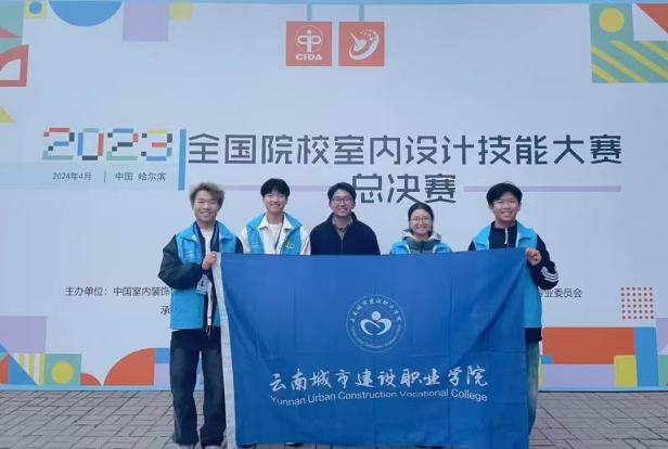▲杨立喆同学参加全国院校室内设计技能大赛比赛照片(右二)
